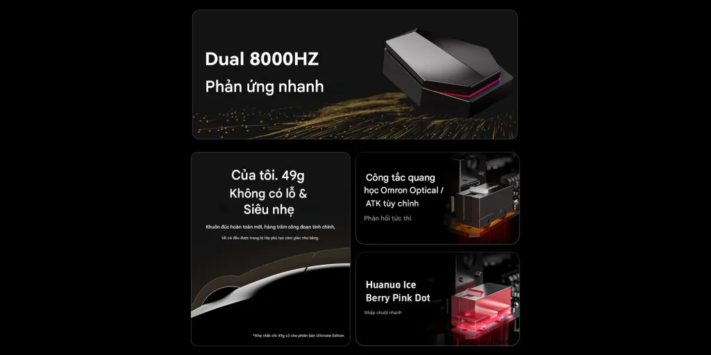 • Tần số phản hồi lên đến 8000Hz: Đảm bảo thao tác nhanh chóng và mượt mà, giúp tối ưu hóa hiệu suất trong game.