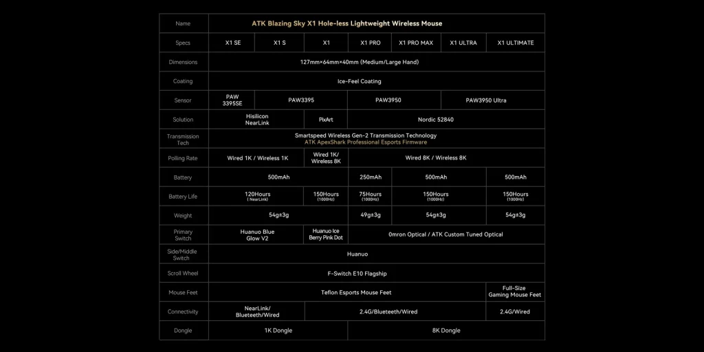 Chuột Gaming không dây ATK Blazing Sky X1 Ultimate | Ultra | Promax | X1 Pro 8K Polling Rate